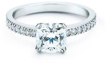 со   венец   од   округли   мали  фасетирани  кружни  дијаманти,  средишниот  фасетиран   дијамант   во   облик   на   коцка, дава   нота на перфекција и гламурозна едноставност.  Каратите  на  средишниот   прстен  варираат   од  0,25  до   2,5  карати.
