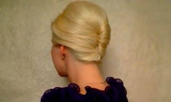 Прво – Поделете ја косата на два дела, еден на темето и еден на долниот дел на главата. Косата на долниот дел свиткате ја и прицврстете ја со шноли.