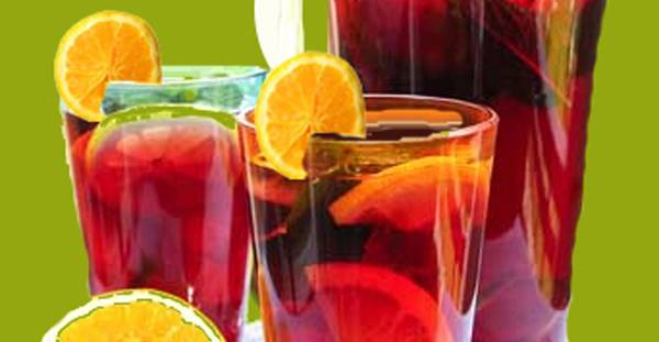 Исецкајте ги добро измиените портокал и лимон на сосема тенки парчиња. Излупете го јаболкото и исчистете го од семките. Исецкајте го и него на тенки парчиња. Измешајте го овошјето со шеќерот, канелата, карамфилот во голем длабок сад. Додадете ги црвеното вино и коњакот, мешајте додека шеќерот не се раствори. Додадете уште шеќер ако е потребно. Оставете го садот во ладилник за околу 1 час. Сервирајте со лед.