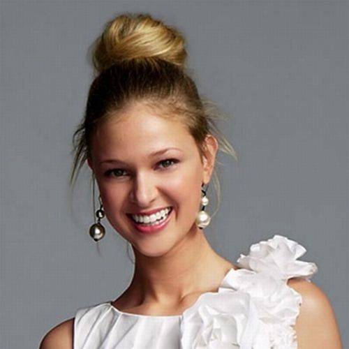 3. Подигнете ја косата во висок реп, но внимавајте да не ви штрчи од ниедна страна. Репчето замотајте го во вид на пунџа и прцврстете со неколку шноли. Внимавајте само пунџата да биде точно на темето, ниту превисоко, ниту прениско.