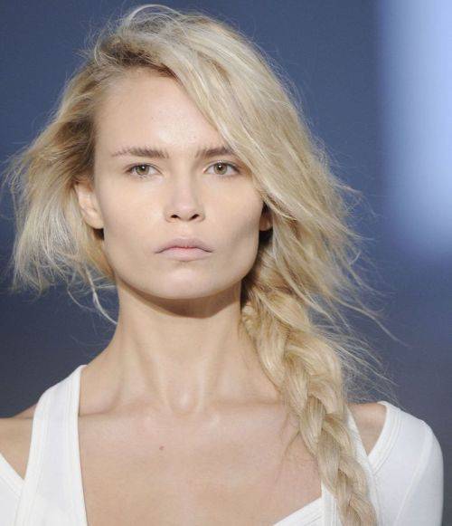 2. Ако имате подолга коса, заврзете плетенка на страна, од вратот па надолу. Пуштете слободно неколку прамени околу лицето.