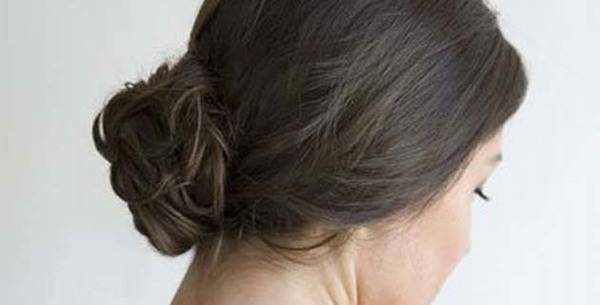 1. Заврзете ја косата од позади во ниско репче, а потоа сплетете лабава плетенка која ќе ја замотата околу репчето и ќе ја зацврстите со неколку шноли. Доколку го сакате лежерниот изглед, пуштете неколку прамени од косата.