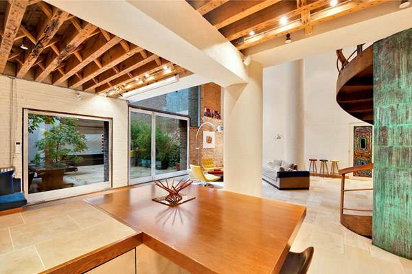 Она што се чини дека е во фокусот на внимание се централните орбитални скалила, направени од леано железо и махагон. Потоа, огромната дневна соба која функционира како јадро на овој дом и внатрешниот простор со бујна вегетација кој е поврзан со главната станбена површина. Бојата е дополнително воведена, надополнувајќи го автентичниот изглед од тули и изложени дрвени греди.