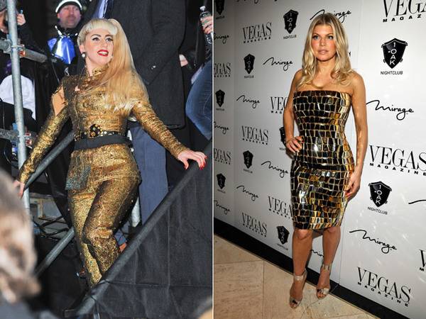 Fergie i Lady Gaga блескаа „како да ќе нема утре“. Fergie целата се покрила со златен сјај и полускапоцени камења, додека Gaga на дочекот во New York блескаше во комплетот од златни монисти, со црвени усни и црвено лакираните долги нокти на рацете. Да се надеваме дека Новата година ќе им биде исто така блескава како и нивниот outfit.