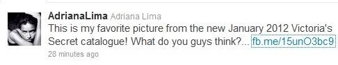 – Ова е мојата омилена фотографија од новиот каталог на „Victoria’s Secret“ за 2012 година. Ви се допаѓа ли и вам? – ги запрашала Лима своите фанови.