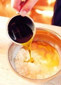 Во подлабока чинија измешајте ги брашното, јајцата, маслиновото масло и виното, па додадете 50 грама (половина) од наренданиот кашкавал. Замесете го тестото и зачините со зачин.