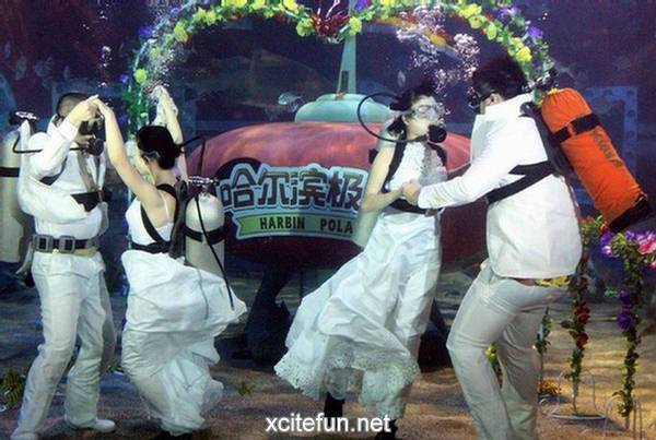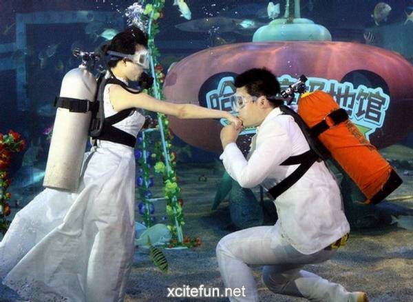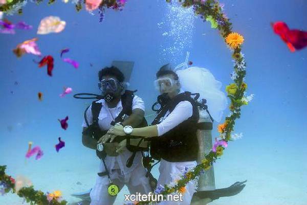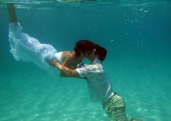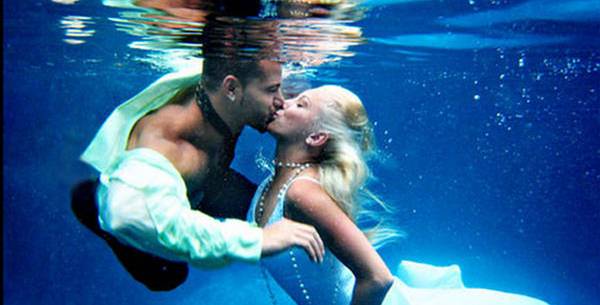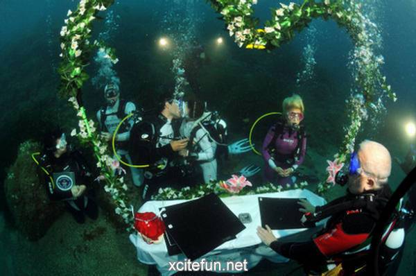 Ви ги претставуваме фотографиите од најголемите организирани подводни венчавки. Рекордот за најголема подводна венчавка го држи италијанскиот пар Франческа Коломби и Џанпјеро Џанокаро, кои се венчаа на брегот на Каполивери на италијанскиот остров Елба, во присуство на 261 нуркач, во јуни 2010 година.