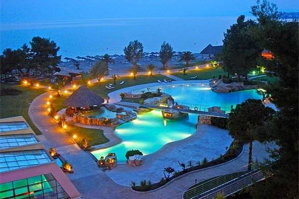 Песочните плажи покрај хотелот, се наоѓаат на 1600 метри, а целокупниот ресорт го сочинуваат три хотели и најголемото приватно пристаниште во Северна Грција. Хотелите Мелитон и Ситонија се синоним за луксуз со пет ѕвездички, а хотелот Village Inn е изграден во византиски стил со стандарди на традиционалната македонска култура, што е само уште еден од доказите кои што нашите јужни соседи ги негираат, во врска со идентитетот.