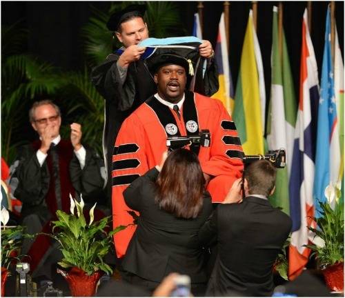 Четири пати беше NBA шампион, а во саботата докторирал на Универзитетот Бери во Мајами. Што е најинтересно, за време на доделувањето на дипломите, Shaquille O’Neal го подигнал својот професор во воздух.