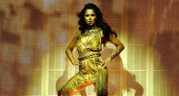 Таа излезе на сцената во специјално дизајнираниот златен комбилизок и тешкиот златен наќит кој имал голем ефект.