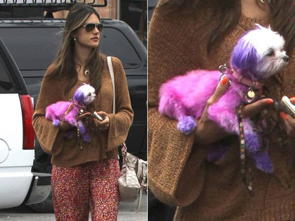 Организацијата за права и заштита на животните, ПЕТА ја обвини преубавата манекенка Алесандра Амбросио. Имено, таа овие денови е сликана на улица како го шета своето чученце кое е со офарбано крзно во виолетова и розова боја.