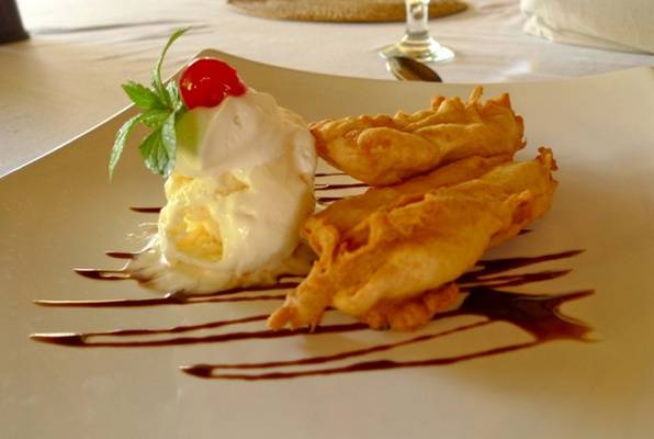 Со помош на лажица ставете од смесата во загреано масло. Откако ќе заруменат извадете ги и ставете ги на хартиена салфета за да ја впие непотребната маснотија. Послужете ги со сладолед од ванила.