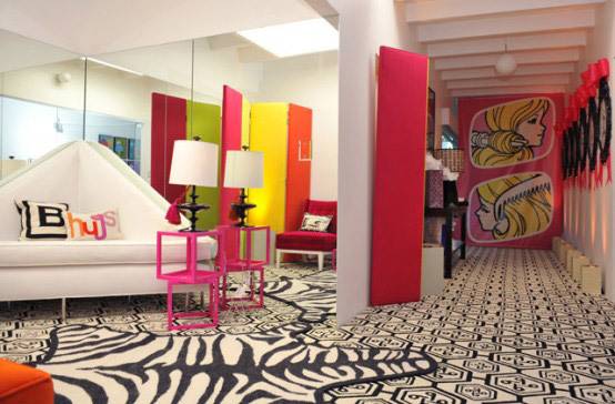 Од гардеробер, до кујна и спални соби, се е инспирирано од слатката розова боја, а некаде е употребен и зебраст, бел и виолетов принт.