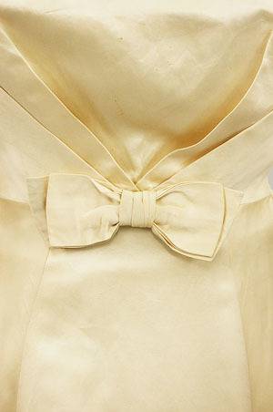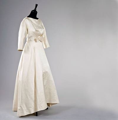 За неа познатите креатори Фонтана Систерс, направија едноставен фустан направен од свила во боја на слонова коска. Украсите беа наменети за пределот под деколтето.