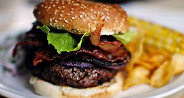 Наредете го сендвичот…На лепчето ставете ја плескавицата, сланина, испржениот кромид и лист зелена салата.