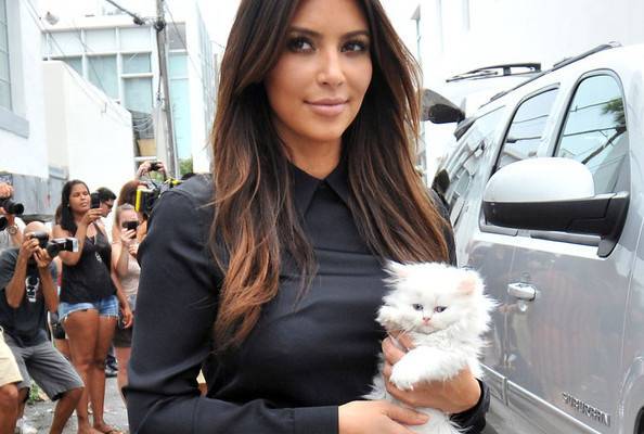 Пред некое време папараците ја фотографираа Лејди Гага како шета со нејзината пудлица Фози, а сега пак Ким Кардашиан е фотографирана како гордо го шета, држејќи го во раце, нејзиното бело маче Мерси. Покрај својата популарна газдарица и мачето Мерси станаа едно од најпознатите миленичиња.