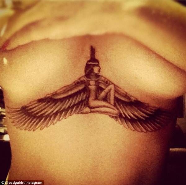 Вака изгледа тетоважата на РиРи. Таа самата се сликаше и ја покажа на своите фанови преку Твитер.