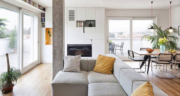 Живеалиштето го краси свеж дизајн и чувство на длабока смиреност. Внатрешноста е дело на професионалците од студиото Studiomobile кои го претвораат во елегантно бегство од бурниот живот. Апартманот е изразен во бел тоналитет, нежно надополнет со дабови елементи кои даваат чувство на топлина и удобност. Спектакуларно решение представуваат и бетонските столбови во дневната кои создаваат шик емитување.