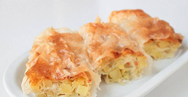Ставете фил преку целата кора и завиткајте ја во ролат. повторувајте ја постаапката додека не ги потрошите сите состојки.