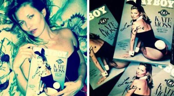 Во јануарскиот број на Плејбој со кој се обележува 60 годишнината од постоење на списанието, ќе ја видите Кејт Мос на насловната страница со зајачки уши и опавче, што воедно е и заштитниот знак на Хју Хефнер, додека во внатрешноста на списанието се разголила на вкупно 18 страници.