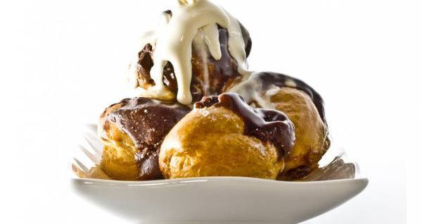 Во еден сад со вода ставете го путерот и малку сол. Откако водата ќе зоврие, тргнете го садот од огнот и додадете го брашното, набрзина измешајте и вратете го на огнот. Мешајте се додека тестото не се претвори во топка и тргнете го од огнот да се олади. Откако ќе се олади, додавајте едно по едно јајце и постојано мешајте додека тестото не стане еластично, но не и ретко. Со мало лажиче или со шприц ставајте мали парчиња тесто во подмачкан плех. Најпрво печете во загреана рерна на 200 степени, а по десетина минути смалете ја температурата на 180 степени. Рерната не ја отварајте првите десет минути. Кога профитеролите ќе добијат убава, златножолта боја, извадете ги и оладете ги. Одвоено истопете го белото и црното чоколадо со павлаката, па полиете ги профитеролите со темно, па потоа со бело чоколадо.