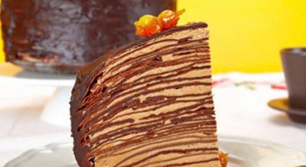 Започнете да ја редите тортата, при што се ставаат по две палачинки и меѓу нив намачкан крем, се додека состојките не се потрошат.