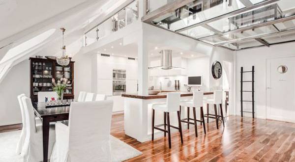 Ретко можете да најдете апартман на поткровје со совршен изглед, но овој вреди да го погледнете. Сместен во срцето на Стокхолм, овој апартман на поткровје има низа пространи соби со модерен дизајн. Декорот и атмосверата се лесни и отворени. Рспоредот е скаледн, комбинирајќи отворена дневна соба и останати приватни простории.