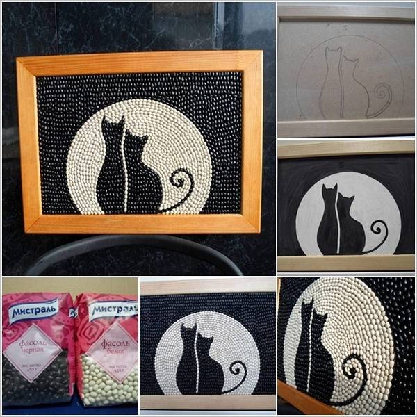 Овој пат може да искористите црн и бел грав кој ќе пробате да го најдете со помали зрна. Потребна ви е рамка со слика, или доволно е добро украсен картон.