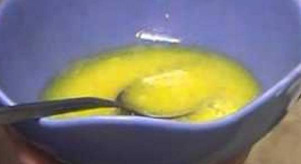 Во сад изматете едно јајце. Додадете една лажица масло и добро измешајте со вилушка. Смесата покријте ја со прозирна фолија, до моментот кога ќе ја користите.