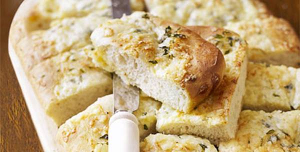 Во голем сад додадете го брашното, солта и квасецот. Во друг сад помешајте 300 мл. топла вода со медот и маслиновото масло па додадете ја оваа смеса во брашното. Месете додека не се соедини, па префрлете го тестото на набрашнета површина. Продолжете со месење околу 5 минути, додавајќи малку брашно по потреба додека тестото не се лепи. Распоредете го тестото во тава за печење. Помешајте го путерот со лукот, и распоредете парчиња одозгора врз лебот. Распоредете го одозгора ренданиот кашкавал и исецканата мајчина душичка. Покријте ја тавата со намрсена фолија и оставете го тестото на топло место околу 40 минути да порасне. Загрејте ја рерната на 200 степени. Тргнете ја фолијата и печете го лебот околу 30 минути. Оставете го да се олади 10тина минути и пресечете го на 12 еднакви парчиња.