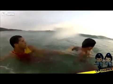 Бразилските спасувачи успеале да извлечат од вода 12-годишно момче кое го повлекла струја. Видеото од драматичното спасување на Бомбаш бич е објавено на интернет.