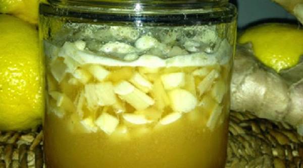 Лимонот добро измијте го и исецкајте го на парчиња. Излупете го лукот и заедно со лимонот и ѓумбирот ставете го блендер. Измиксајте го убаво во еднолична смеса. Така подготвената смеса стѕавете ја во метален сад, ставете 2 литри вода и загрејте ја до точка на вриење. Веднаш пред да зоврие отстранете ја од огнот и оставете да се излади. Исцедете ја низ цедилка и наполнете ја во стаклени шишиња.