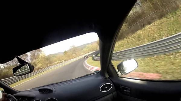Настојувајќи да биде побрз од послабиот Ford Focus RS, возачот на Porsche 911 GT3 неколку пати претера, првиот пат едвај се извлече, а потоа заврши во заштитната ограда. Како што дознавме, освен штетата на автомобилот, мораше да ја покрие и штетата на оградата.