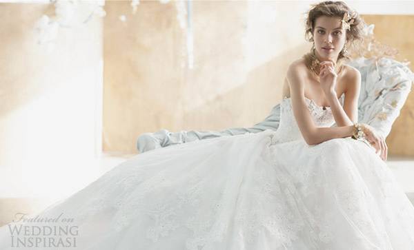 Оваа колекција претставува рај за очите. Инспирирана од гламурот на дваесетите, дизајнерот ја користи најубавата чипка за создавање на овие нежни, романтични изледи. Фустаните се завршени со нејзиниот препознатлив рачен вез и резултатот е оваа лебедова колекција. Прекрасно, зарем не?
