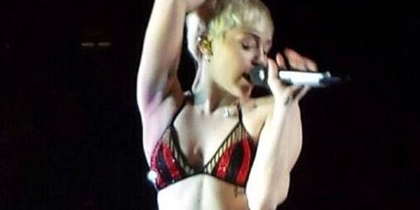 Иако не и е прв пат да настпува полугола, овој пат Мјали Сајрус навистина немаше ниту костум на сбе туку обичен долен веш, но секако, совршено и стоеше.