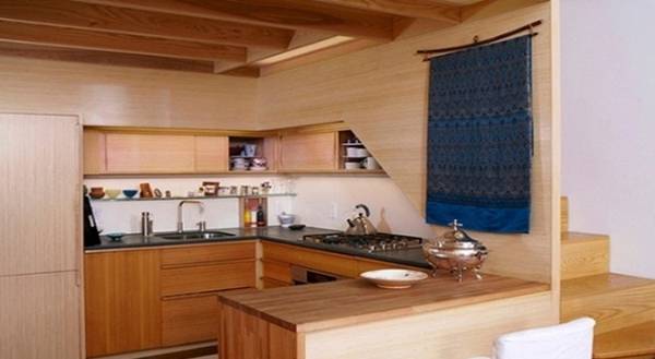 Со цел да создаде пријатна средина за својот клиент, архитектот речиси целосно користел дрво – комодите и орманите се изработени од бамбус и чемпрес, скалилата од јасен и бука, додека подовите ги краси бел даб.