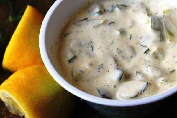 Состојките се мешаат и се оставаат да отстојат минимум 15 минути во фрижидер. Се служи со топли пилешки прсти или јадење по избор.