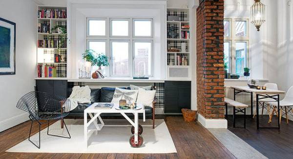 Секој од 44-те квадратни метри во овој скандинавски стан е оптимизиран, што резултира со дом кој едноставно воодушевува. Комбинацијата од неколку разновидни материјали (дрво, цигли и кожа) совршено се надополнува со црно-белиот мебел.