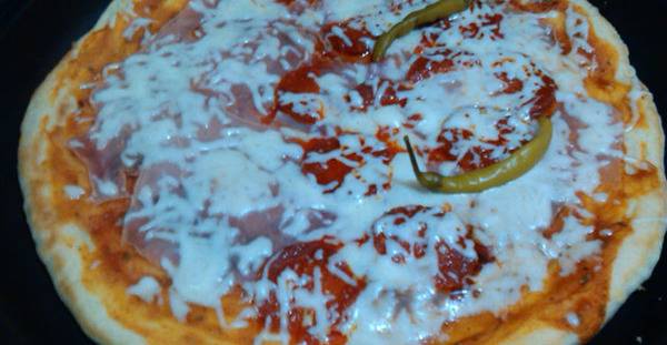 Во сосот од домати додадете оригано, босилек, изгмечен лук, сол и бибер. Наредете ја шунката, куленот по желба, ренданиот кашкавал и ставете тенки листови од печурки и по желба феферонки. Рерната загрејте ја 250 степени, и ставете ја пицата да се пече точно 10 минути.