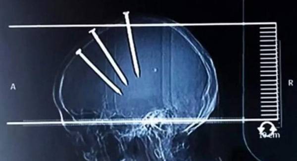 Еден кинез за чудо преживеал откако тој самиот си заковал три шајки со должина од 10 сантиметри.