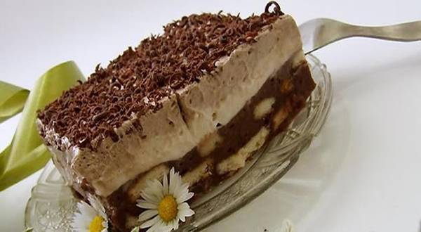 Откако пудингот ќе биде готов, отстранете го од огнот и додадете ги скршените бисквити па разлеете ја смесата во плех. Отако добро ќе се излади ставете го изматениот шлаг. Врз шлагот ставете изрендано чоколадо.
