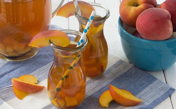 Состојки: 12 шолји вода, 5-6 кесички бел чај, 2 праски, 1 шолја манго (свеж или замрзнат), 1/4 шолја шеќер