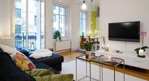 Дизајнерските решенија за 56 квадрати се генијални, а ја комбинираат функцијата со стилот на типичен шведски начин. Штом влезете во станот ќе забележите бел ходник со храстов паркет. Од ходникот се влегува во кујната и дневната соба. Заради високите тавани дизајнерите направиле простор за уште еден кревет до кој се доаѓа со помош на скали, а овој кревет е совршен за гости. Каков е вашиот впечаток?