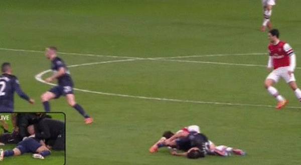 Тие исто како и Кристијано Роналдо и Маркињо во мечот помеѓу Реал и Атлетико се сретнаа во воздухот, а Рафаел после одличното одбивање на топката падна на глава.