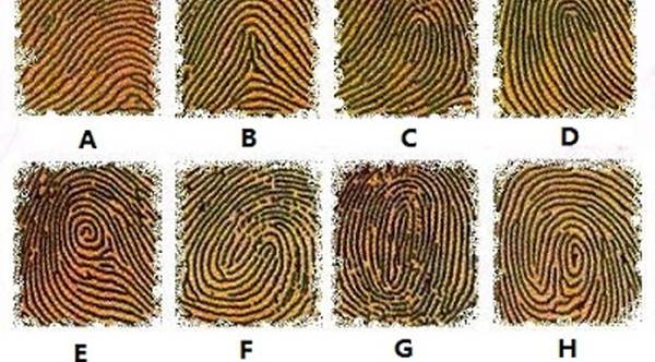 На крајот научниците ги разделиле отпечатоците на 8 групи, и составиле детална анализа на сопственикот. Во која група спаѓате вие? За да дознаете треба едноставно да го споредите отпечатокот од показалецот на десната рака со моделите на сликата.