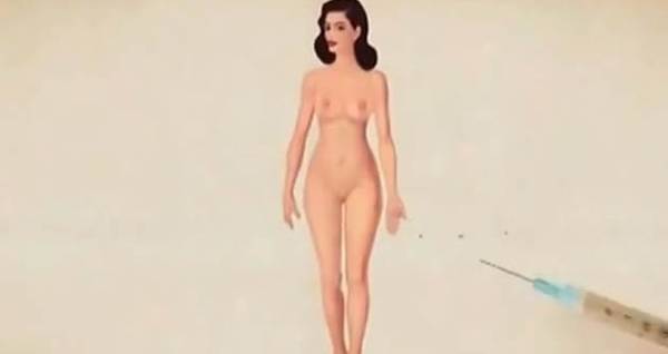 Земајќи ја како појдовна точка илустрацијата на жена со вообичаена анатомија на женското тело, тој тргнува на пат кон современиот идеал: скалпел, липосукција, шминка и отстранување на сите „непотребни“ делови од телото.