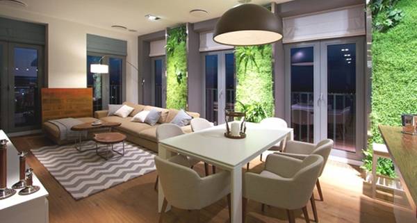 Природните елементи сепак не се среќаваат само по фасадите на зградите. Проектантската фирма Svoya Studio, на пример, дизајнирала стан, во кој дел од ѕидовите се со трева и растенија. Идејата се нарекува “Зелените ѕидови” и се наоѓа во Днепропетровск, Украина.