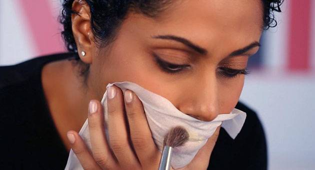 Што се однесува до оние непријатни остатоци од кармин на чашите проблемот можете да го решите со малку камена пудра, салфетка и четкичка.