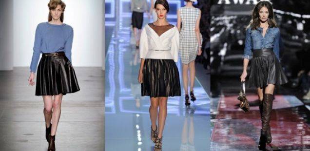 Оваа сезона, кожата е „ин“ и се јавува како доминантен материјал на многу парчиња облека. Кожните здолништа со фалти или едноставните кратки се сепак најдобриот избор за оваа сезона, а можете да ги најдете во сите продавници.