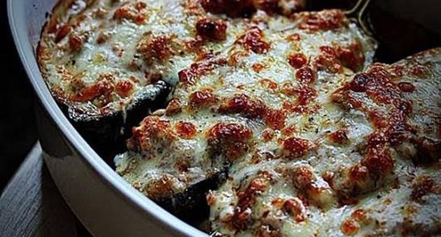 Наполнете ги модрите патлиџани со сосот, изрендајте кашкавал над нив, и на крај на секој од нив додадете парчиња моцарела исечкани на кругови.